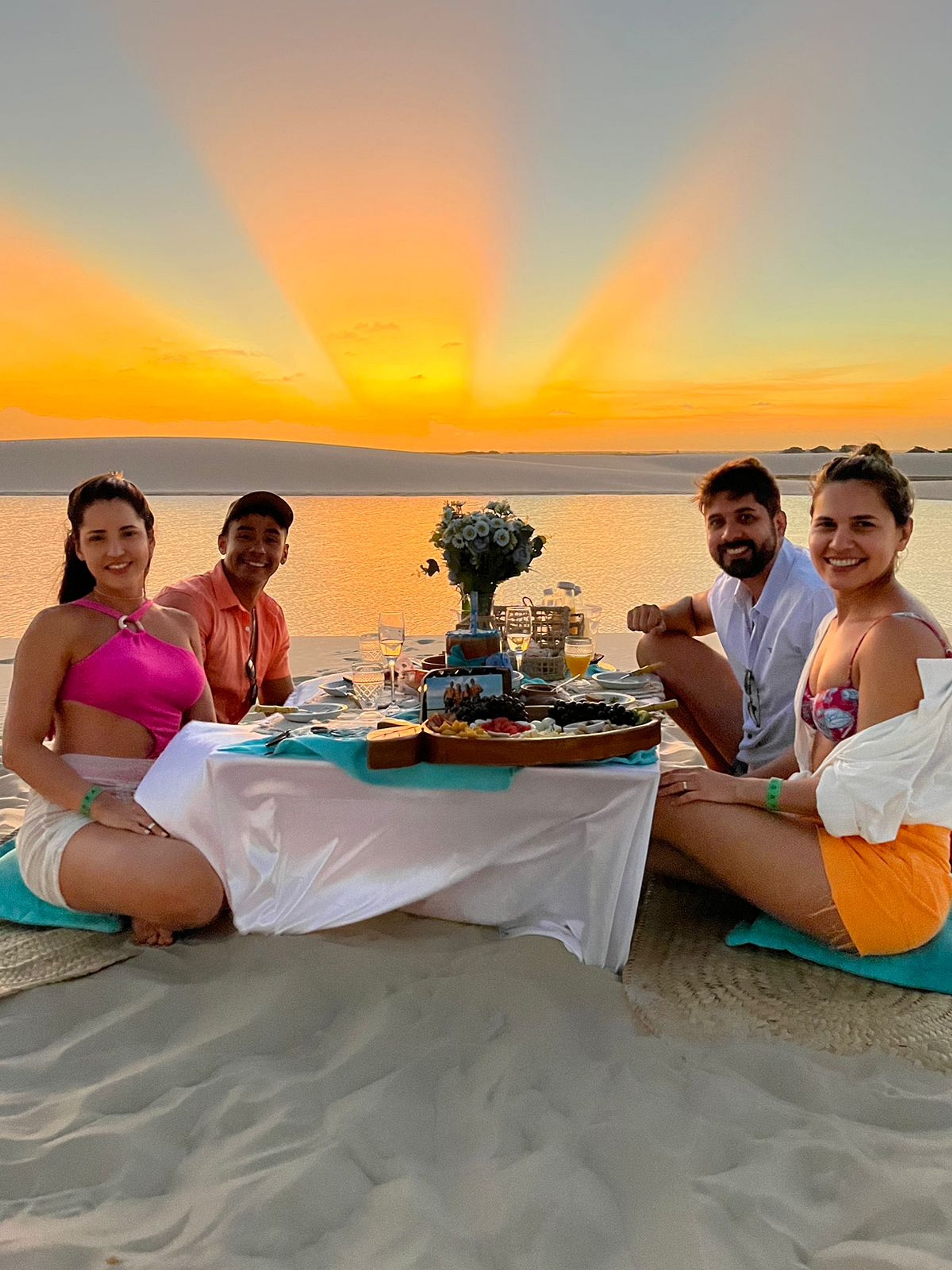 Depois retornamos para o almoço por volta das 14h00 assim que todos terminarem de almoçar, retornamos para Barreirinhas, chegamos na cidade por volta das 17h00 até às 18h00.(TAXA DE R$ 10,00 NA TRAVESSIA DO ALMOÇO , NÃO INCLUSO)