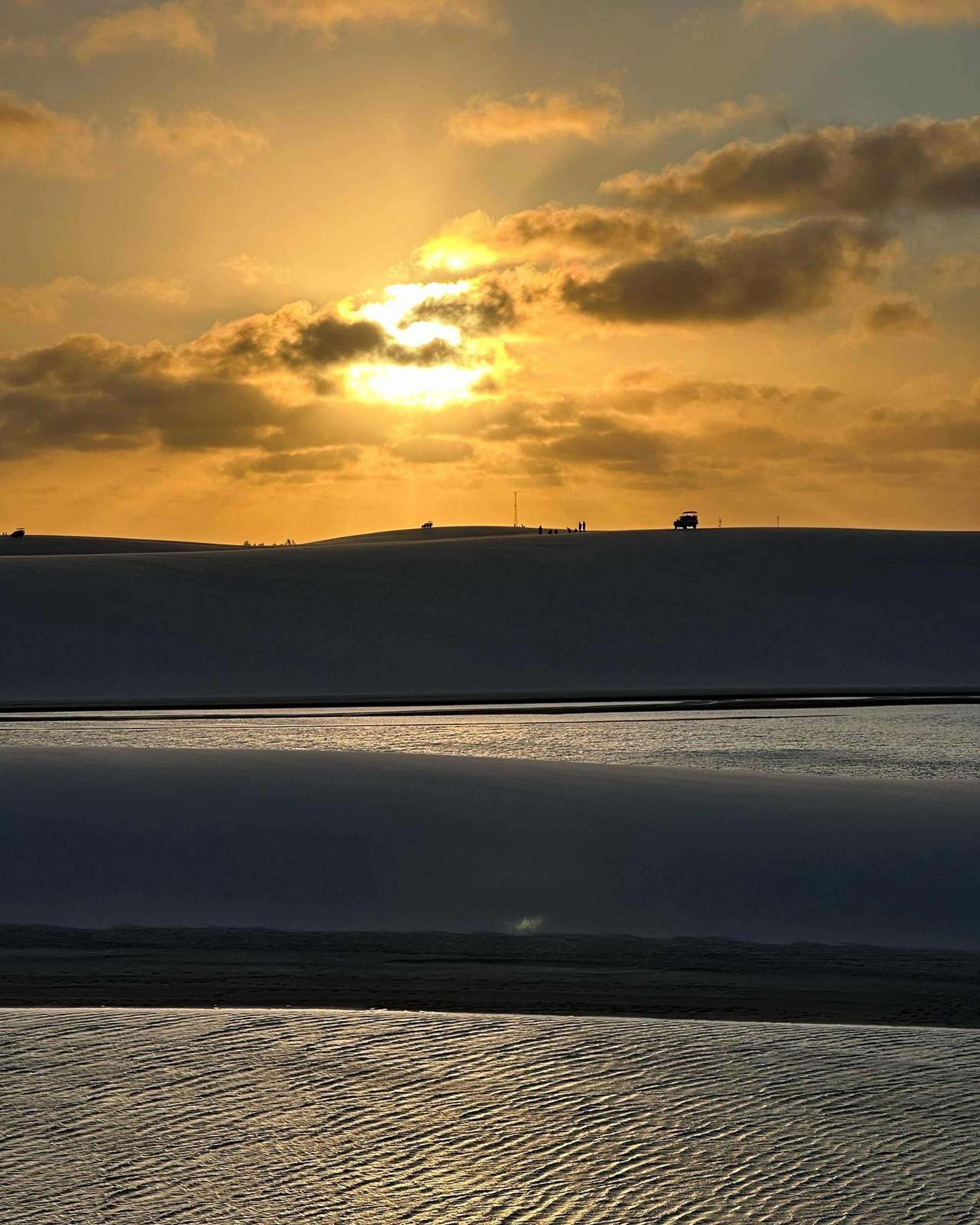 O passeio sai às 14:00, com parada rápida para a compra de água e lanches (por conta dos clientes). Logo em seguida segue para uma das balsas para travessia que dura de 5 a 8 minutos, onde todos descem do carro e após a travessia sobem novamente para pegarem uma trilha de 1h20m pela restinga da região até chegar no início das dunas onde os carros ficam e todos sobem a pé a primeira duna, são cerca de 64M de altura, a vista de cima vale apena cada degrau. Nesse circuito conhece três lagoas com parada para banho em cada uma delas. O retorno é após o pôr do Sol às 17h45 aproximadamente, logo depois todos embarcam no veículo novamente e segue de volta pra Barreirinhas chegando às 18:30.