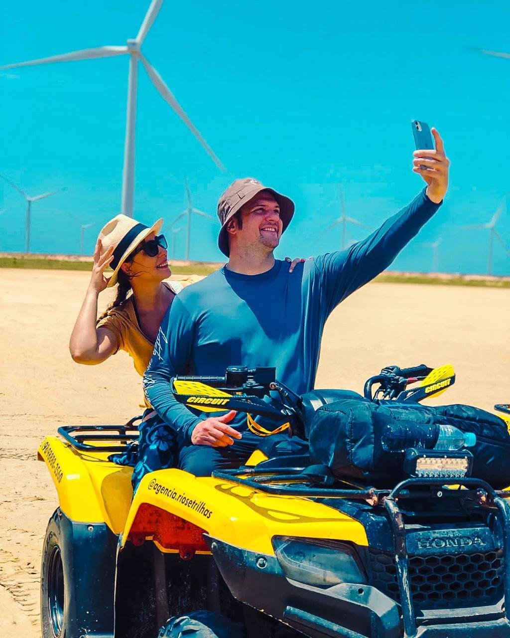 Após o almoço a aventura será de quadrículo, percorrendo uma incrível trilha a beira mar, e por diferentes cenários até chegar nas incríveis dunas dos Pequenos Lençóis, onde a aventura se intensifica por um grande campo de dunas e entre as enormes torres de energia eólica, e claro, teremos paradas para se refrescar nas lagoas. Chegaremos a Barreirinhas entre 17:00 e 17:30, finalizando assim nossa aventura.